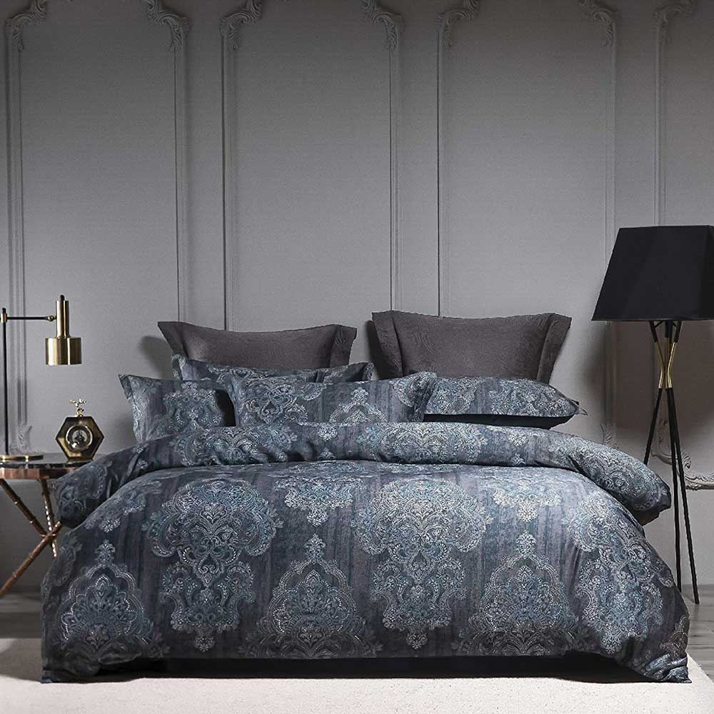 Purchased the three piece duvet set 100% Egyptian cotton in blue. The unboxing had my entire sales floor enraptured and asking about the set. The color is so much more than just a navy blue. There is a depth of woven accents that really makes the pattern pop. It almost feels like silk. I have been looking for a light duvet set so my menopausal hot flash self can make it through the night without melting. I'll use it without an insert over the summer and with one in the winter. The material cools immediately when you move it around to get comfortable. Oh! We also have a 90lb lab that thinks he needs to be in the bed. No snags and hair brushes off pretty darn easy. I am in love and will definitely buy another set to rotate with this one.