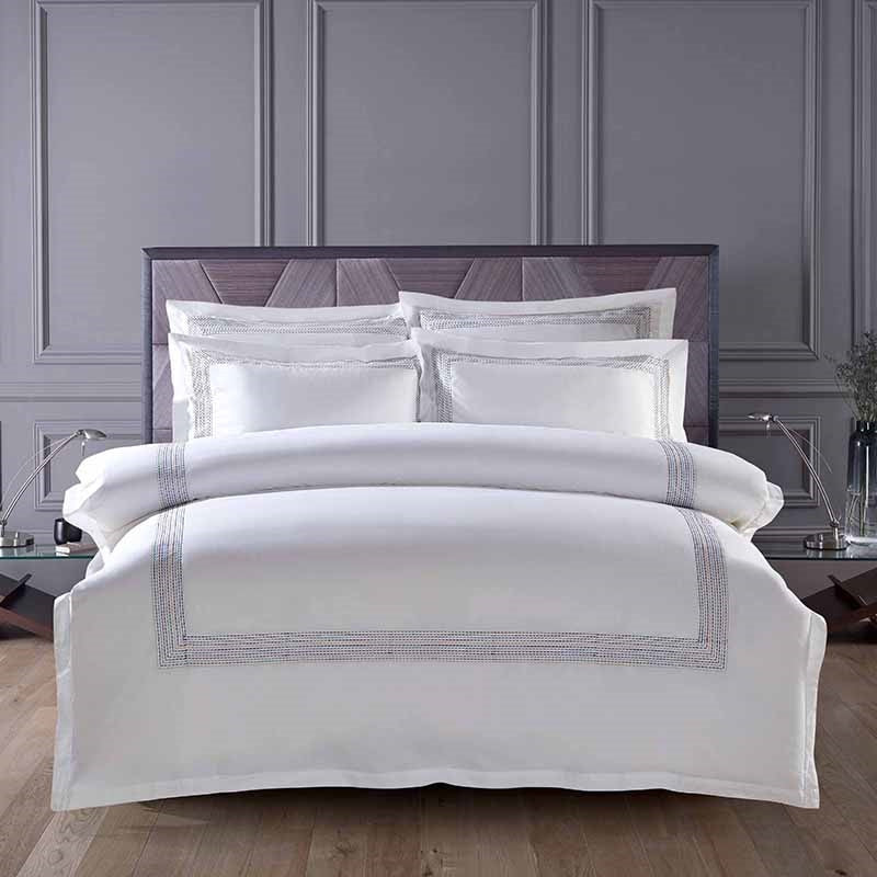 Revitalize your bedroom with an awareness of modern trends through our Abyad Hotel Rainbow Stitch Egyptian Cotton Bedding Set. The versatile bedding is made to be paired with practically any style, from classic to contemporary. The embroidered panels bring textural complexity to the set without fighting the streamlined colorway of the design.