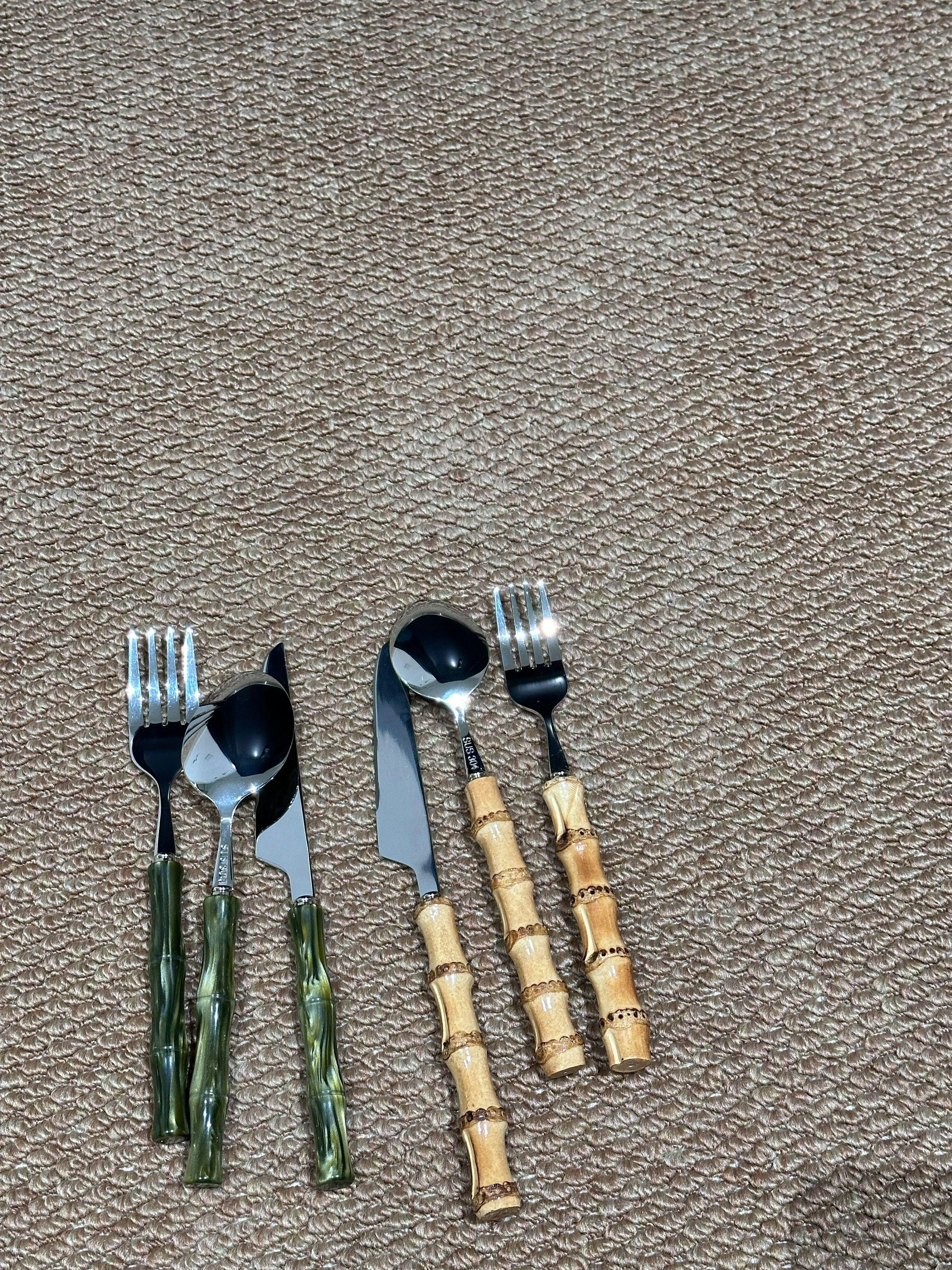 Inspired by nature's most beautiful forms yet both functional and elegant set has been designed and crafted to perfection. The cutlery set is made of a combination of 18/10 Stainless with a natural bamboo handle. This bamboo and stainless steel are perfect for everyday use and a sustainable choice for the future.
