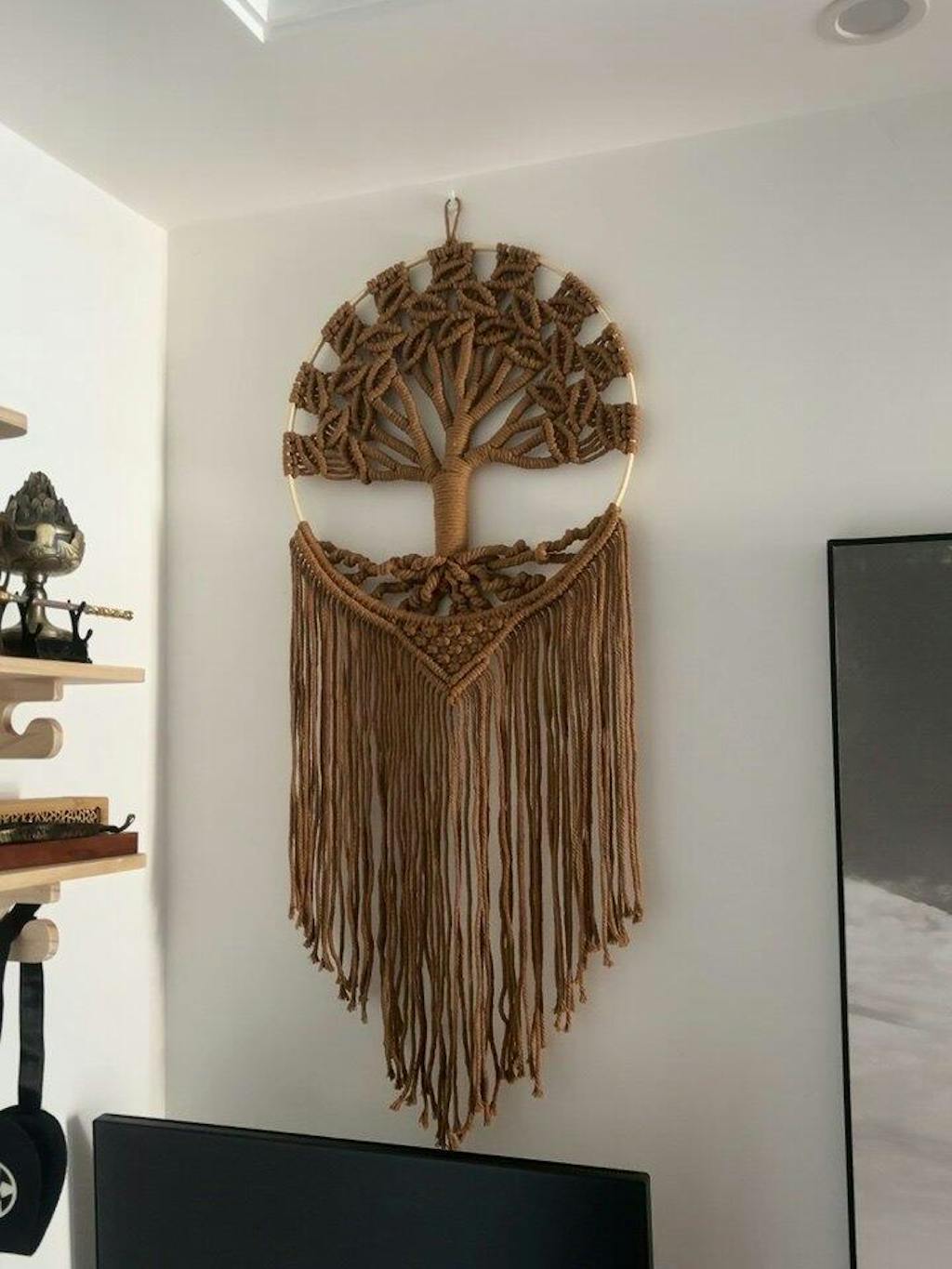 Infused with symbolism and artisanal beauty, this handcrafted Macramé Tree of Life Wall Hanging is more than décor—it is a powerful symbol of positive energy, harmony, and prosperity. The Tree of Life represents growth, protection, and the continuous flow of energy, believed to attract good fortune and balance into the home. Handwoven from cotton-polyester rope with elegant flowing fringes, it creates a calm, uplifting energy field while adding refined bohemian character to any space.