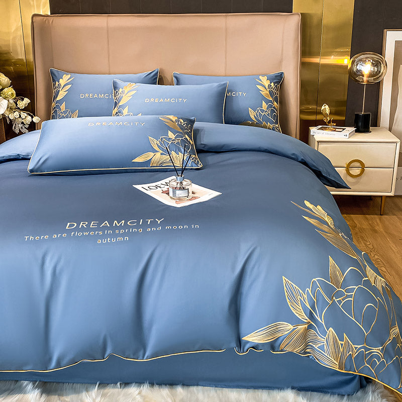 Complement your regal decor with items for everyday use. The Yedwo bedding set blends in beautifully. The breathable pure Egyptian cotton fabric is extremely soft and durable, so it will not sag with extended use. The luxurious gold embroidery is eye-catching on any occasion and will delight you time and time again.