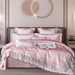 Elevate your bedroom with this exquisite European-style bedding set, crafted from premium 140S cotton-silk blend for a silky soft touch and breathable comfort. Featuring elegant lace trim and a romantic pink hue, this four-piece set embodies refined luxury, perfect for weddings or creating a serene, indulgent sleep experience.