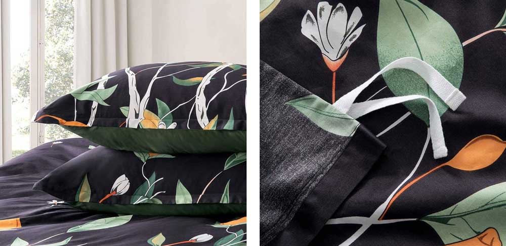 Mid-century modern chic botanical print bedding set by Yedwo home.