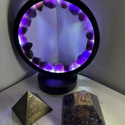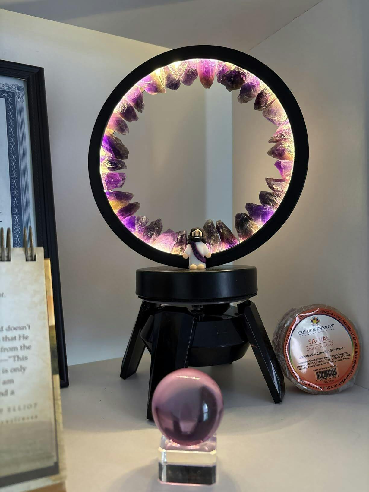 Transform any space into a healing oasis full of sacred energy with the serene Amethyst halo lamp. The 3 adjustable light modes help soothe the soul, awaken intuition, and instill a comforting sense of trust and peace with the world around you.