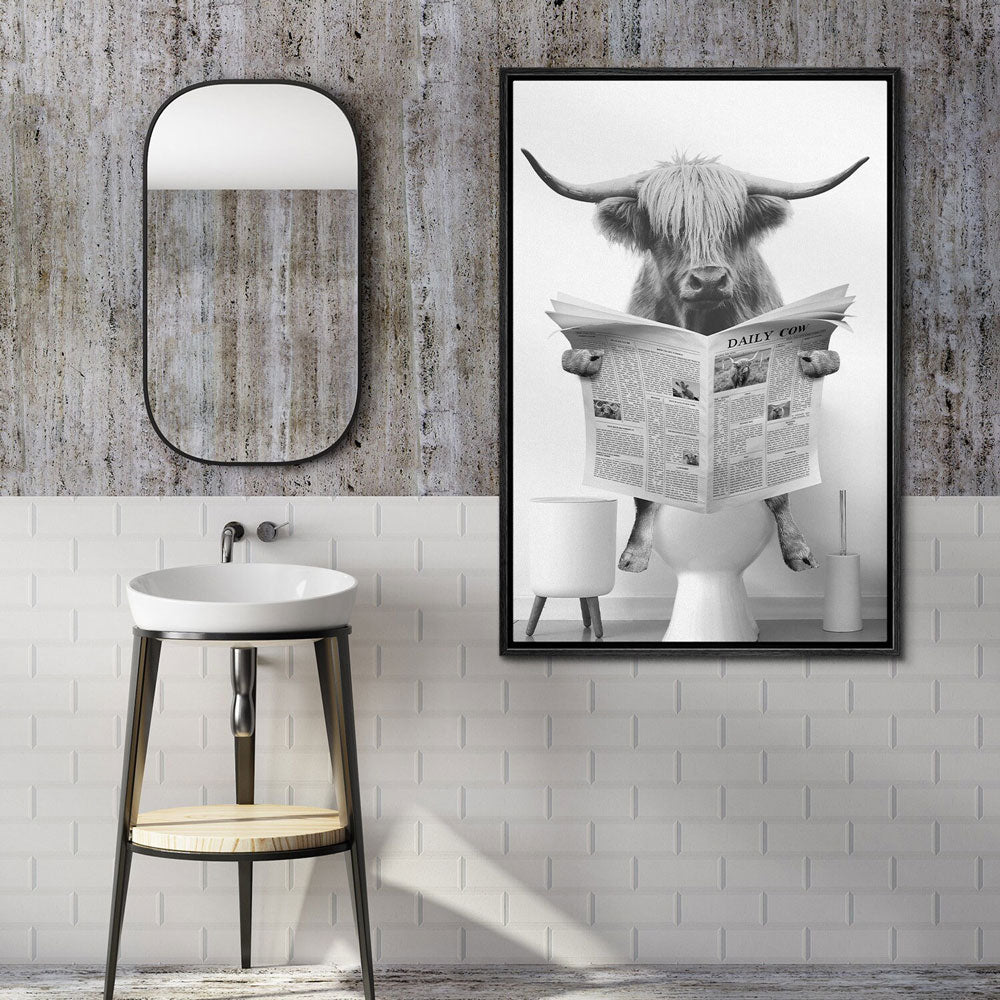 Highland Cow Sitting on the Toilet Framed Canvas Wall Art | Yedwo