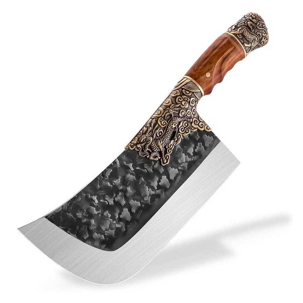 This cleaver is nice, good weight, sharp cuts meat like butter, I really enjoy the look, my family can't belive I actually use it instead of it it just being a decoration lol
