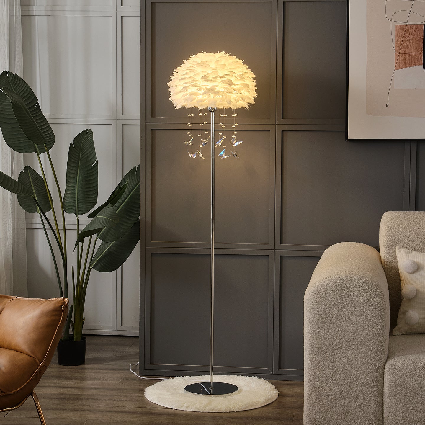 This elegant floor lamp features a soft feather lamp body adorned with delicate butterfly pendants, creating a whimsical yet luxurious charm. Perfect for placing beside the sofa or at the bedside, it adds warmth, sophistication, and a dreamy ambiance to any room.