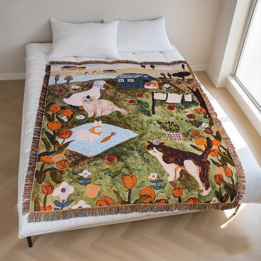 Woven with refined jacquard craftsmanship, this all-cotton tapestry throw captures a calm pastoral aesthetic with rich texture and depth. Made from high-quality cotton, it offers a soft yet substantial hand feel and enduring durability. Designed for versatile use, it elevates sofas, beds, and walls with understated luxury while remaining breathable and comfortable year-round.