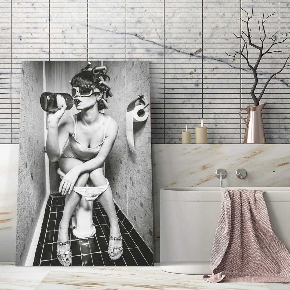 Nothing to see here... just a carefree woman enjoying alcohol on her porcelain throne.