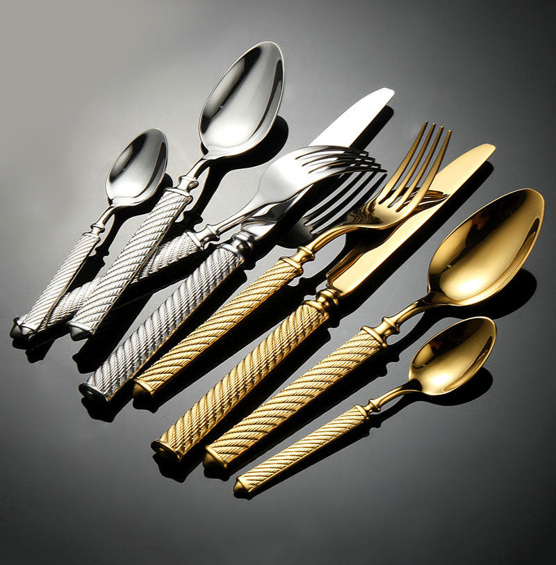 Designed with a classic Roman rope motif, this premium cutlery set is crafted from solid 304 stainless steel for a refined, heavyweight feel. Built for hotel and Western dining, the steak knife delivers clean, effortless cuts, while the balanced fork enhances every steak experience with elegance and durability.