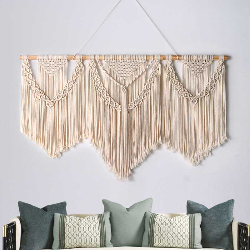 The large macrame wall hanging that adds a unique, boho-luxury touch to any space. Hang it on your wall as macrame curtains for windows, macrame headboard for bedroom, woven hanging tapestry.
